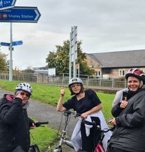 As we rely on Divine Providence and charitable fundraising is such an important part of meeting our day to day needs, it is a struggle to find innovative Covid secure means of fundraising. Mark, our Chef Manager, who has previously done a sponsored cycle for the home, and Sr Christina our Collecting Sister, decided that a sponsored cycle could be a means of raising money towards the £250,000 we need to complete works necessary to meet improved Fire Safety in the 9 lounge areas of the home. Sr Christina worked hard to round up staff and residents who were willing to participate and to get sponsors for the event. Then Leeds went into local restrictions and the rule of 6 came along. However undaunted all the participants said they would complete the cycle from Rodley to Saltaire and back along the canal path, separately or in groups of 6 or less or cycle 14 miles elsewhere.